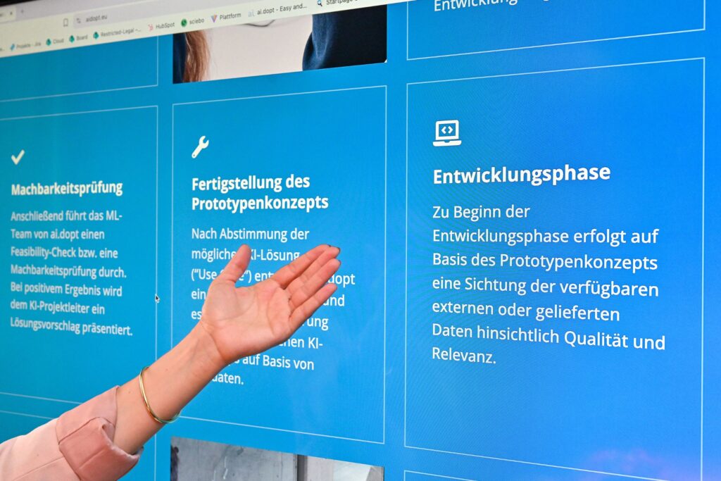 Als zentrale Lösung entwickelt ai.dopt „KIMS“: ein KI-Management-System, das in Zusammenarbeit mit dem Frauenhofer-Institut sowie im Rahmen von drei Forschungskooperationen mit der Ruhr-Universität Bochum, der Universität Koblenz und der Universität Ulm entsteht. „Außerdem arbeiten wir eng mit Unternehmensberatungen zusammen. Oberste Priorität hat in jeder Kooperation immer der messbare Mehrwert“, so die ai.dopt-Gründerin.